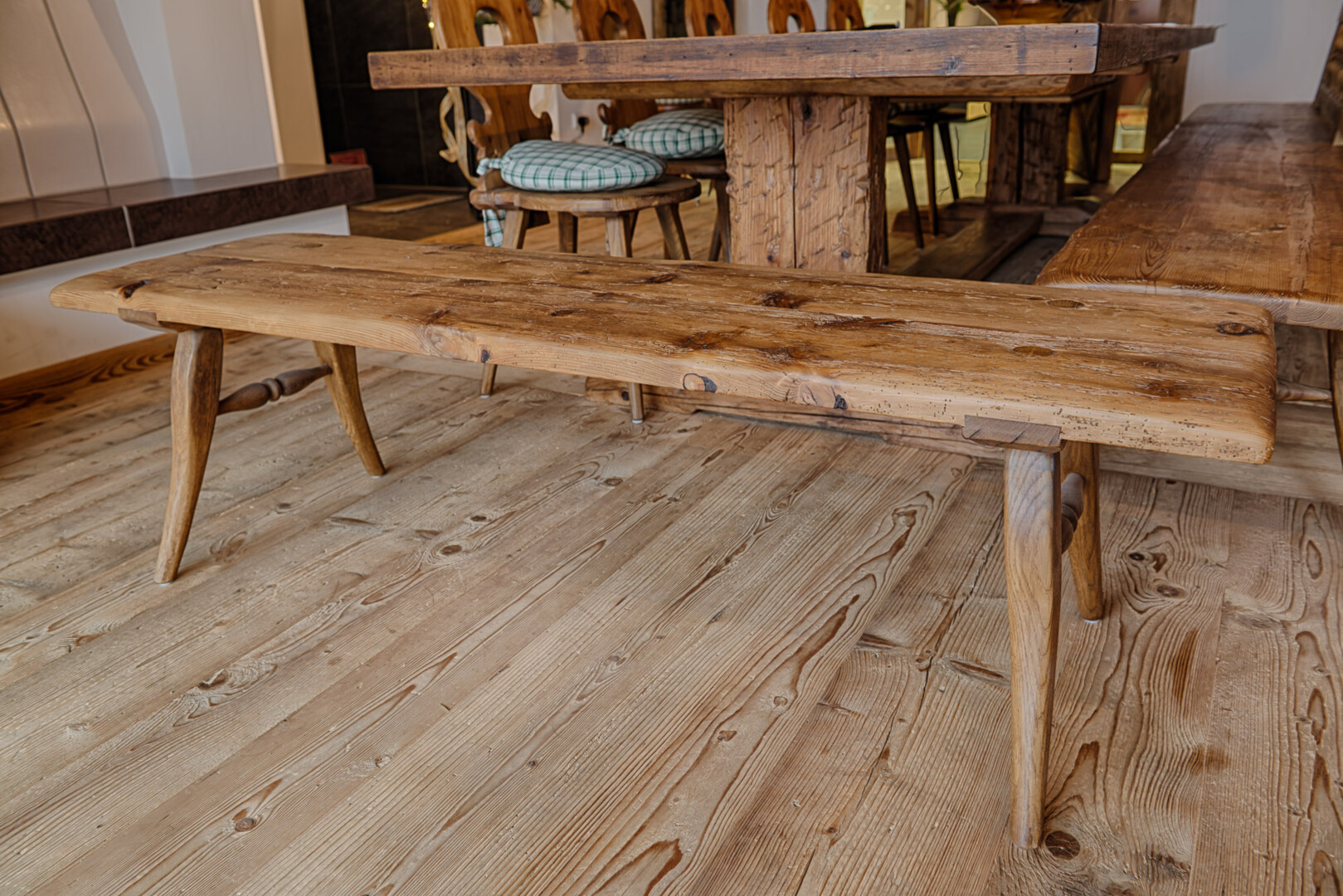 Alte Holzbretter können unterschiedlicher nicht sein. Geschrubbte Fußböden aus alten Bauernhäusern oder handgehackte Tram alter Dachstühle: Jedes Altholzbrett ist ein Unikat. Und genau daraus fertigen wir unverwechselbare Sitzbänke, bei der keine der anderen gleicht. Robust, individuell und ein echter Blickfang, egal ob drinnen oder draußen.
