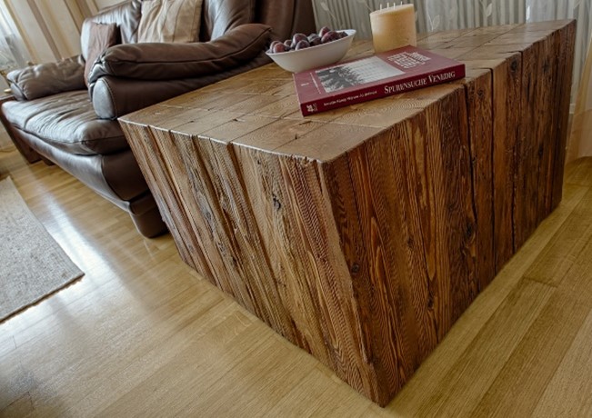 Das verwendete Holz bestimmt den Charakter Ihres Tisches: Fichte wirkt hell und freundlich, Tanne bringt eine kraftvolle Struktur mit und Eiche steht für zeitlose Eleganz. Je nachdem, wo das Altholz einst verbaut war, bringt es seine eigene Geschichte mit. Handbehauene Balken aus Dachstühlen zeigen typische Hackflächen, sonnenverbrannte Bretter von Außenwänden tragen die Spuren von Wind und Wetter, und alte Fußböden erzählen mit jeder Kerbe und jedem Kratzer von vergangenem Leben. Genau das macht jedes Stück unverwechselbar.