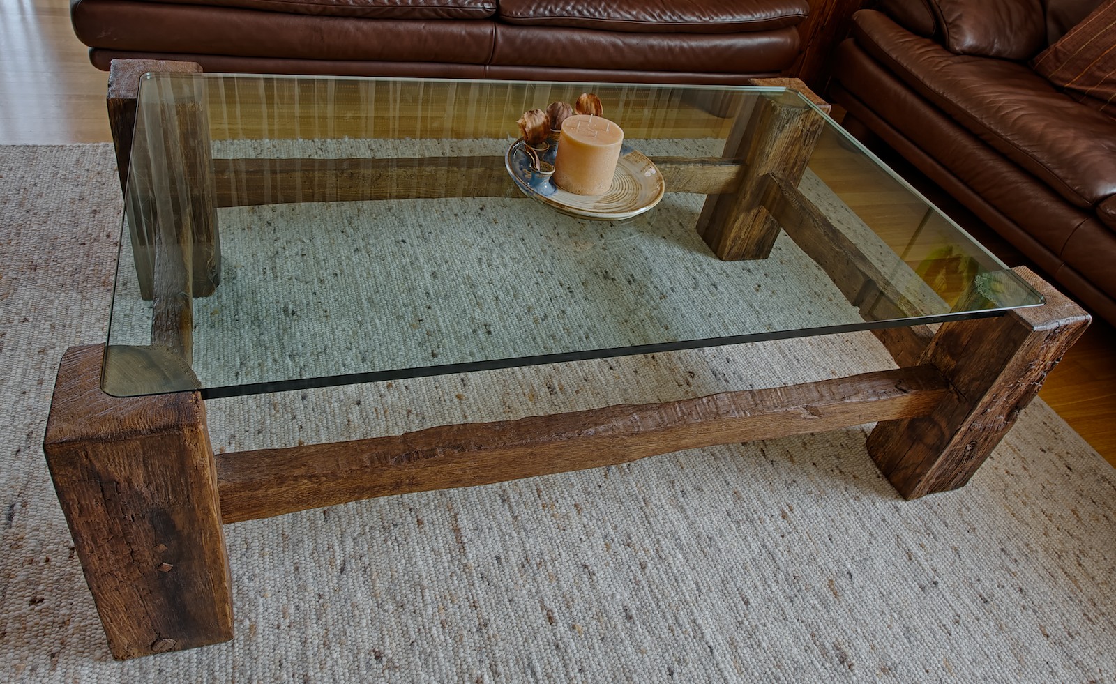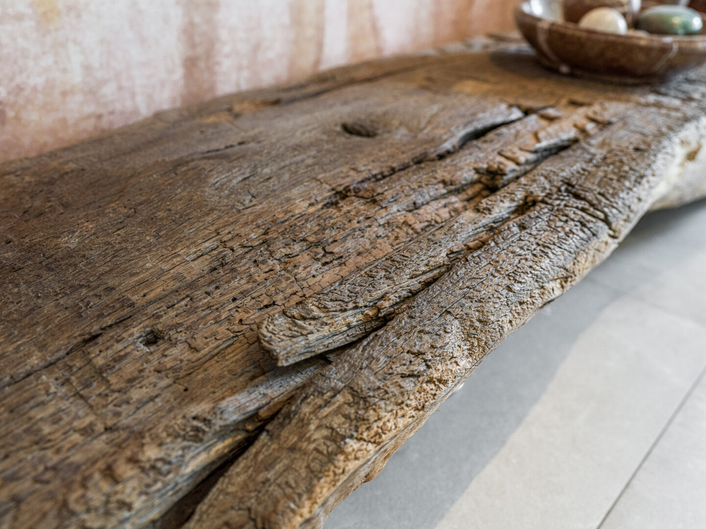 Das verwendete Holz bestimmt den Charakter Ihres Tisches. Je nachdem, wo das Altholz einst verbaut war, bringt es seine eigene Geschichte mit. Handbehauene Balken aus Dachstühlen zeigen typische gehackte Flächen, sonnenverbrannte Bretter von Außenwänden tragen die Spuren von Wind und Wetter, und alte Fußböden erzählen mit jeder Kerbe und jedem Kratzer von vergangenem Leben. Genau das macht jedes Stück unverwechselbar.