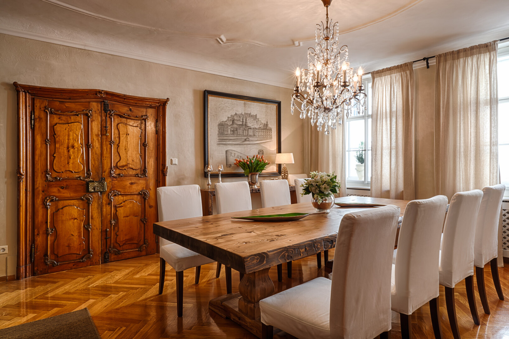 Wer auf der Suche nach einem unverwechselbaren i-Tüpfelchen fürs Esszimmer ist, ist bei uns richtig. Esstische aus Altholz erfüllen jede Vorstellung. Ein Esstisch kann rechteckig, rund oder oval sein. Die Platte kann von einem Kreuzgestell, einer Säulenkonstruktion, von rustikalen Wangen oder vier Füßen getragen werden. Details wie eingefasste Marmorplatten, Intarsienbänder oder dekorative Hartholzleisten machen Ihr Unikat noch einzigartiger. Jeder Altholz Esstisch wird aus sorgfältig ausgewählten Altholzbrettern gefertigt. Kein Tisch gleicht dem anderen: Risse, Kerben und Strukturen machen ihn zu einem echten Unikat.