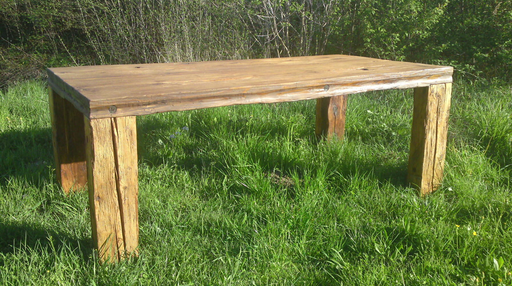 Großartiger Konferenztisch aus einzigartigem Material. Formal reduziert auf das stark dimensionierte Wesentliche: eine Tischplatte und vier Füße. Füße abnehmbar, Oberfläche fein gebürstet, auf Wunsch gebeizt und geölt oder geseift.