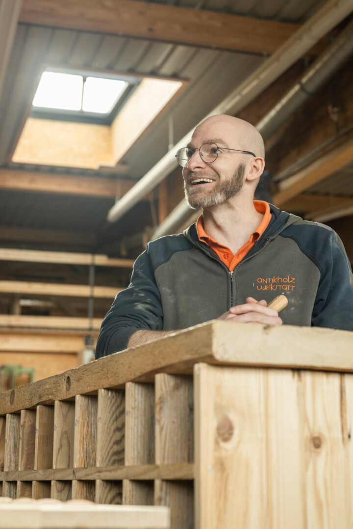 Was uns verbindet? Die gemeinsame Leidenschaft für Altholz. Wir lieben es, mit diesem besonderen Material zu arbeiten, auch wenn es manchmal widerspenstig ist. Gerade darin liegt die Herausforderung, die uns als Team antreibt und zusammenschweißt. Was uns besonders wichtig ist: Ehrlichkeit. Wir sagen klar, wenn etwas nicht passt – aber genauso, wenn etwas richtig gut gelungen ist. Diese Offenheit sorgt für Vertrauen, Respekt und dafür, dass wir als Team noch enger zusammenwachsen.