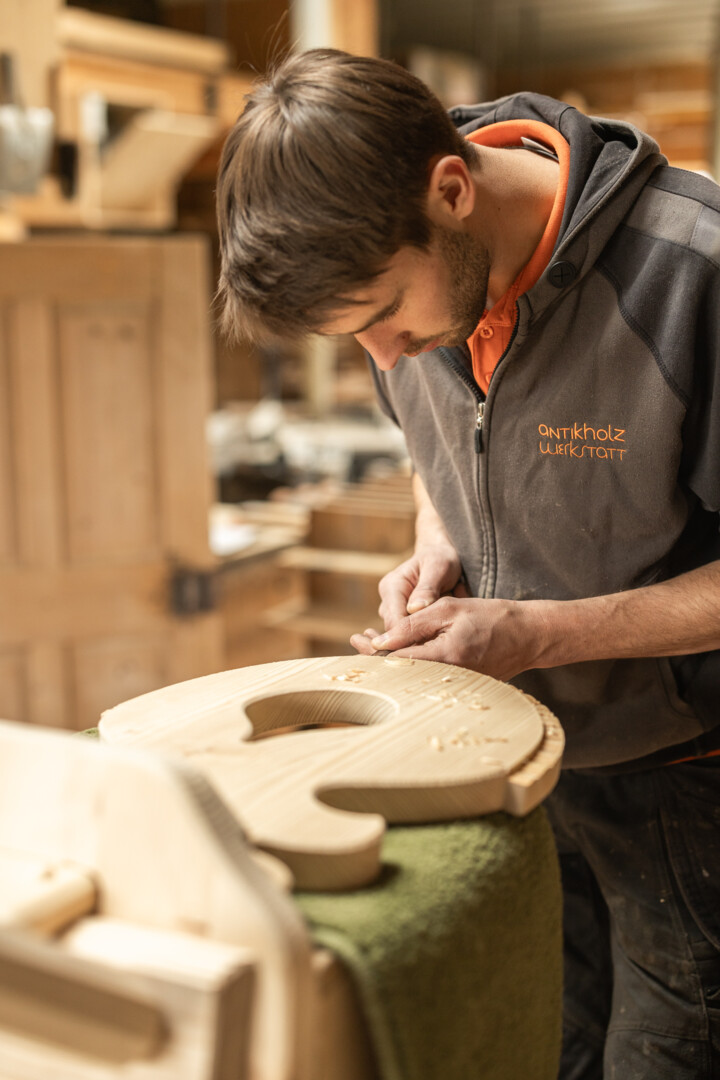 Die Bearbeitung von altem Holz benötigt spezielles Wissen, viel Erfahrung und jede Menge Fingerspitzengefühl. In unserer Werkstatt arbeiten wir ohne große industrielle Maschinen, wir legen Hand an jedes einzelne Brett. Denn nur so erschaffen wir echte Einzelstücke. Jedes Detail entsteht Schritt für Schritt per Hand – mit Sorgfalt und Können.