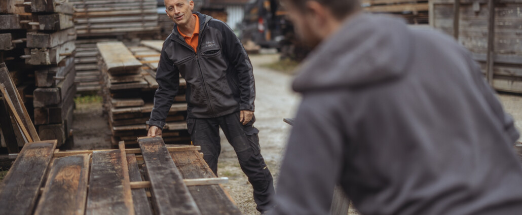 Das Holz alter Tennenböden ist besonders dick, breit und robust. Es eignet sich sowohl für den Außenbereich als auch für die Gestaltung von Wohnräumen. Ob als markante Wandverkleidung oder als großzügiger Esstisch – dieses Material ist so vielseitig wie langlebig. Für Sie bringen wir diesen speziellen Typ Altholz in eine einzigartige Form, die als Möbelstück oder Inneneinrichtung jeden Blick auf sich zieht.