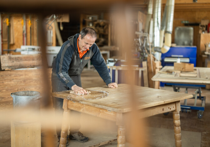 „Sowas würde bei mir nie aus der Tür raus gehen“ – dieser Satz sagt alles. Kein Stück verlässt die Werkstatt, bevor es nicht unseren hohen Ansprüchen genügt. Wir arbeiten absolut ehrlich – machen das alte Holz schöner, feiner und besser. Unser gesamtes Team lebt dieselbe Philosophie: kompromisslose Qualität, Authentizität und echtes Handwerk.
