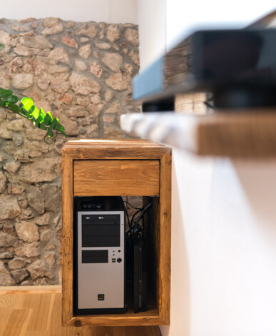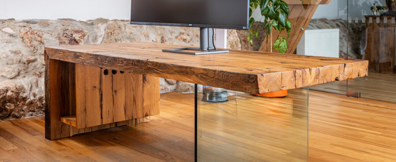 Ein Büro aus Altholz vereint Funktionalität mit Atmosphäre: Die natürlichen Oberflächen schaffen ein Umfeld, in dem man gerne arbeitet, konzentriert bleibt und sich inspiriert fühlt. Gleichzeitig wirkt das besondere Design repräsentativ nach außen und vermittelt Kunden sowie Geschäftspartnern Beständigkeit, Authentizität und Charakter. So wird Ihr Büro zum Raum, der innen wie außen überzeugt.