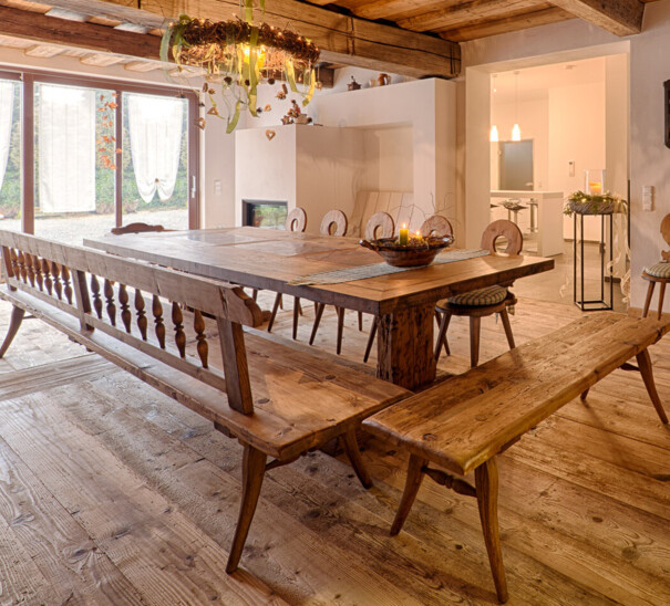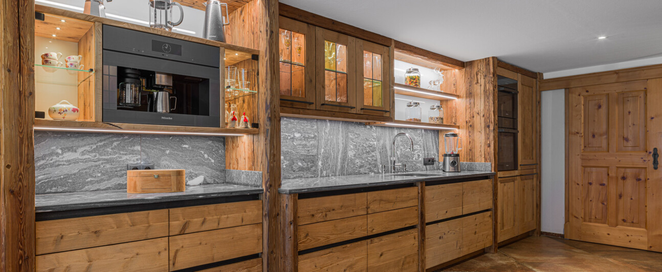 Wenn Sie Ihre bestehende Küche verschönern möchten, stehen wir natürlich auch zur Verfügung. Eine Bar aus Altholz, ein rustikales Weinregal für die edlen Tropfen oder eine neue Arbeitsplatte, die Ihrer Küche Charakter verleiht – aus Altholz verleihen wir Ihrer Küche optische Highlights, die in Erinnerung bleiben.